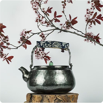 纯手工银壶煮⽔煮茶